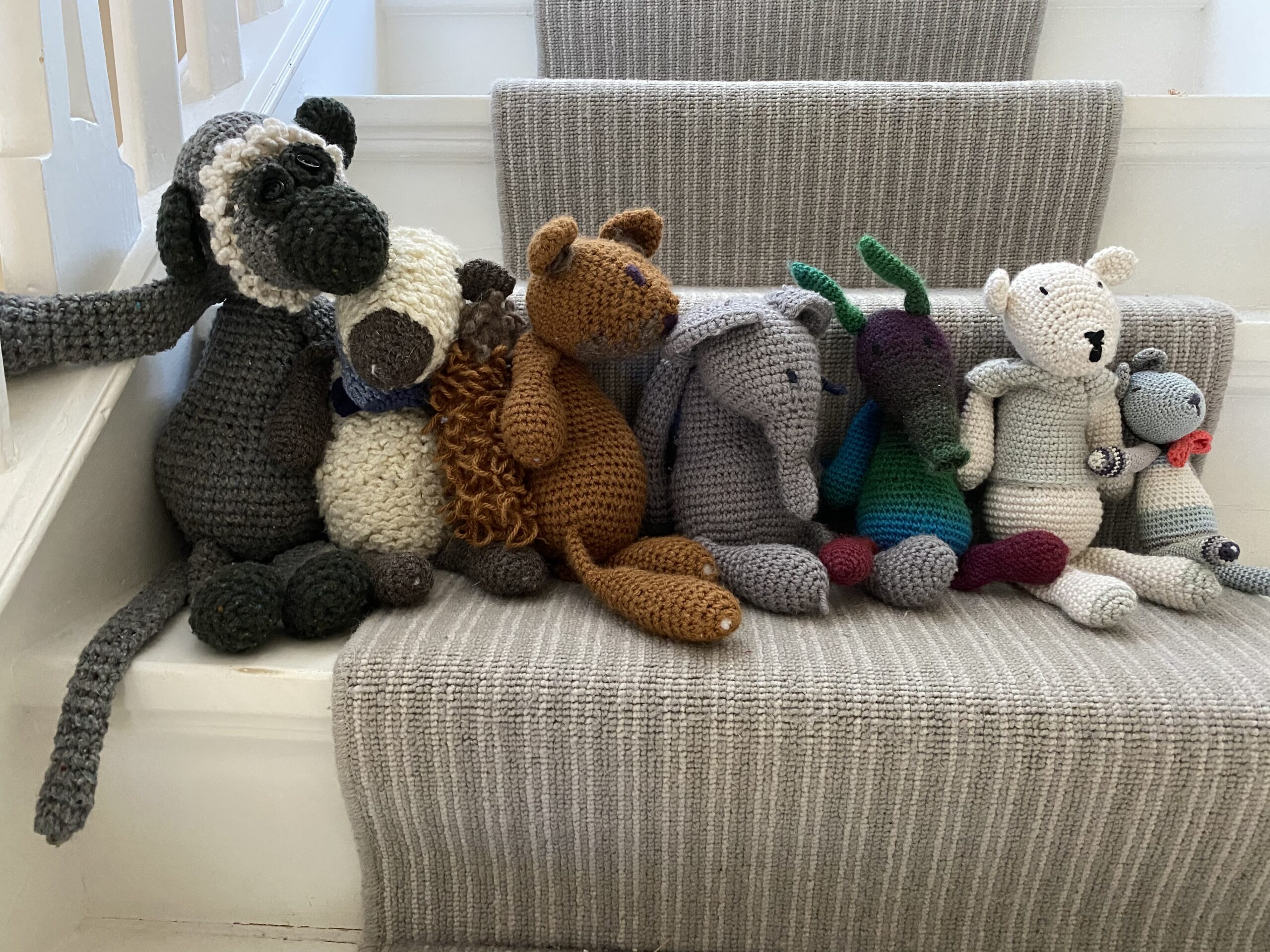 These are animals that I have made for my three children. You can see how the sizes vary depending on the wool or thread I use and the hook size.